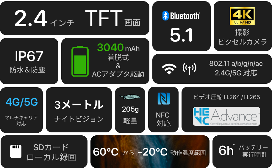 | バッテリー容量 | 3040mAh | ※ホットスワップ対応 |